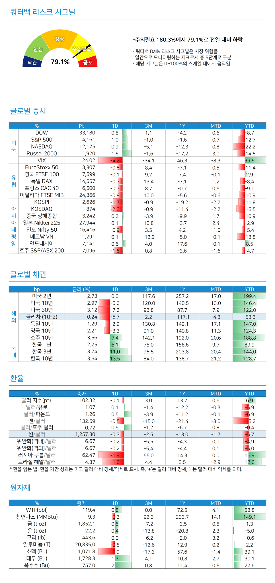 1. 미국 2분기 GDP전망 하향 : 미국 애틀랜타 연은이 발표하는 2분기 미국 GDP 성장률 전망치는 0.9%(전 분기 대비 연율)로 지난 1일 발표치(1.3%)대비 하향 조정. 추가 하향으로 2분기 연속 마이너스 성장을 기록할 경우(1분기 GDP 성장률 -1.5%), 미국 경제는 이미 리세션에 진입했을 가능성 존재.
