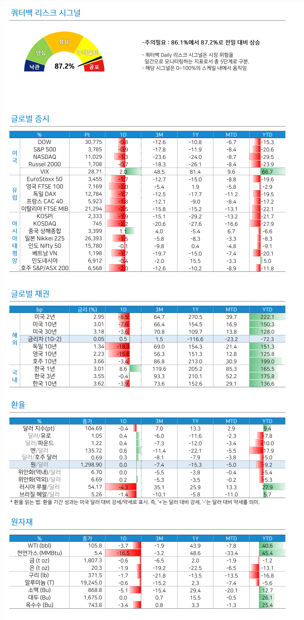 1. 미국 2분기 GDP" : 미국 애틀랜타 연은이 발표하는 2분기 미국 GDP 성장률 전망치는 -1.0% (전 분기 대비 연율)로 지난 27일 발표치 (0.3%) 대비 하향 조정. 예상대로 미국의 2분기 GDP가 마이너스 성장을 기록할 경우 (1분기 GDP 성장률 -1.6%), 미국 경제는 기술적 경기 침체에 돌입했다고 판단.
