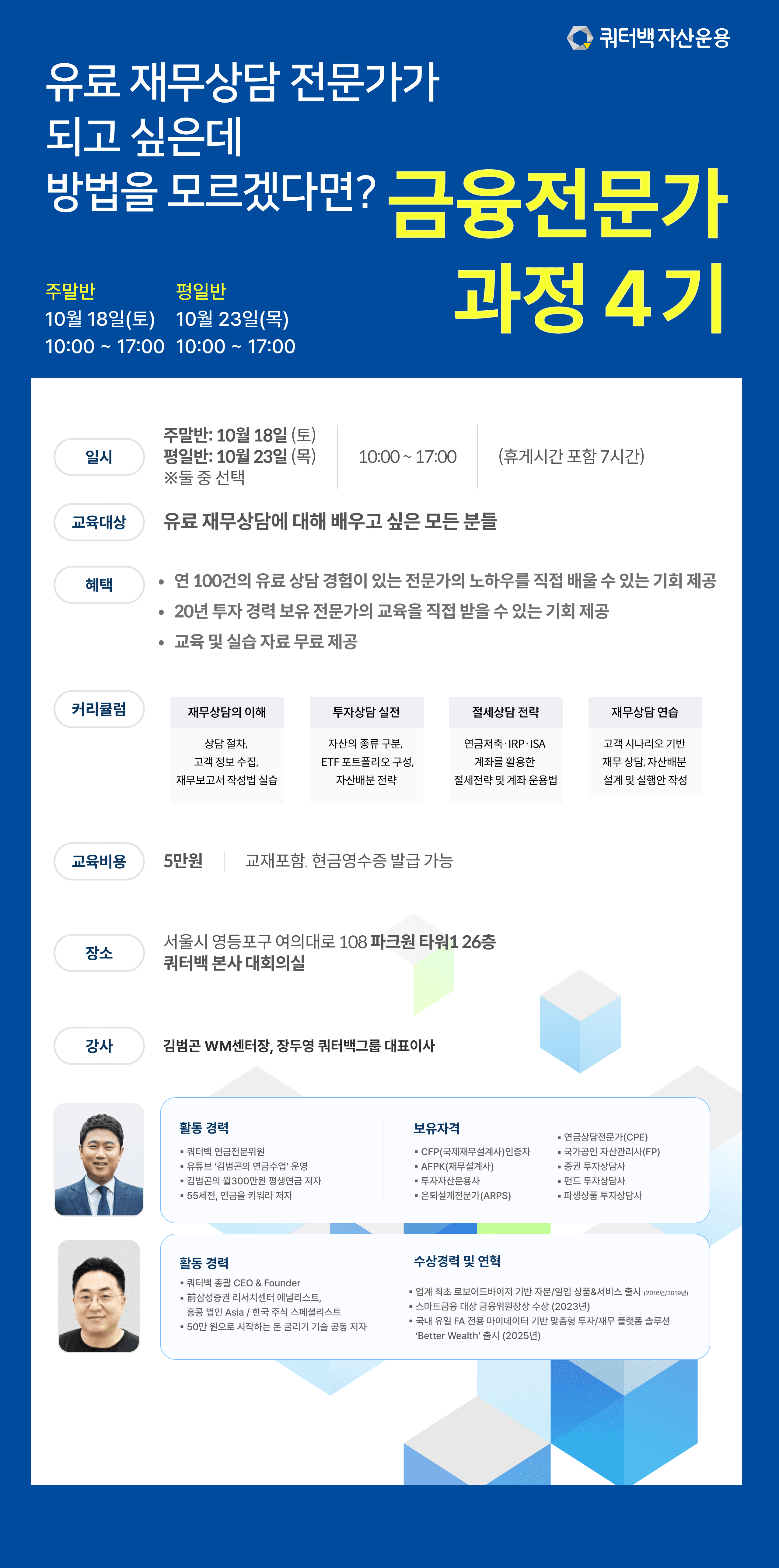 유료 재무상담사로 가는 길, [금융전문가 과정 4기 모집] (~10/16)