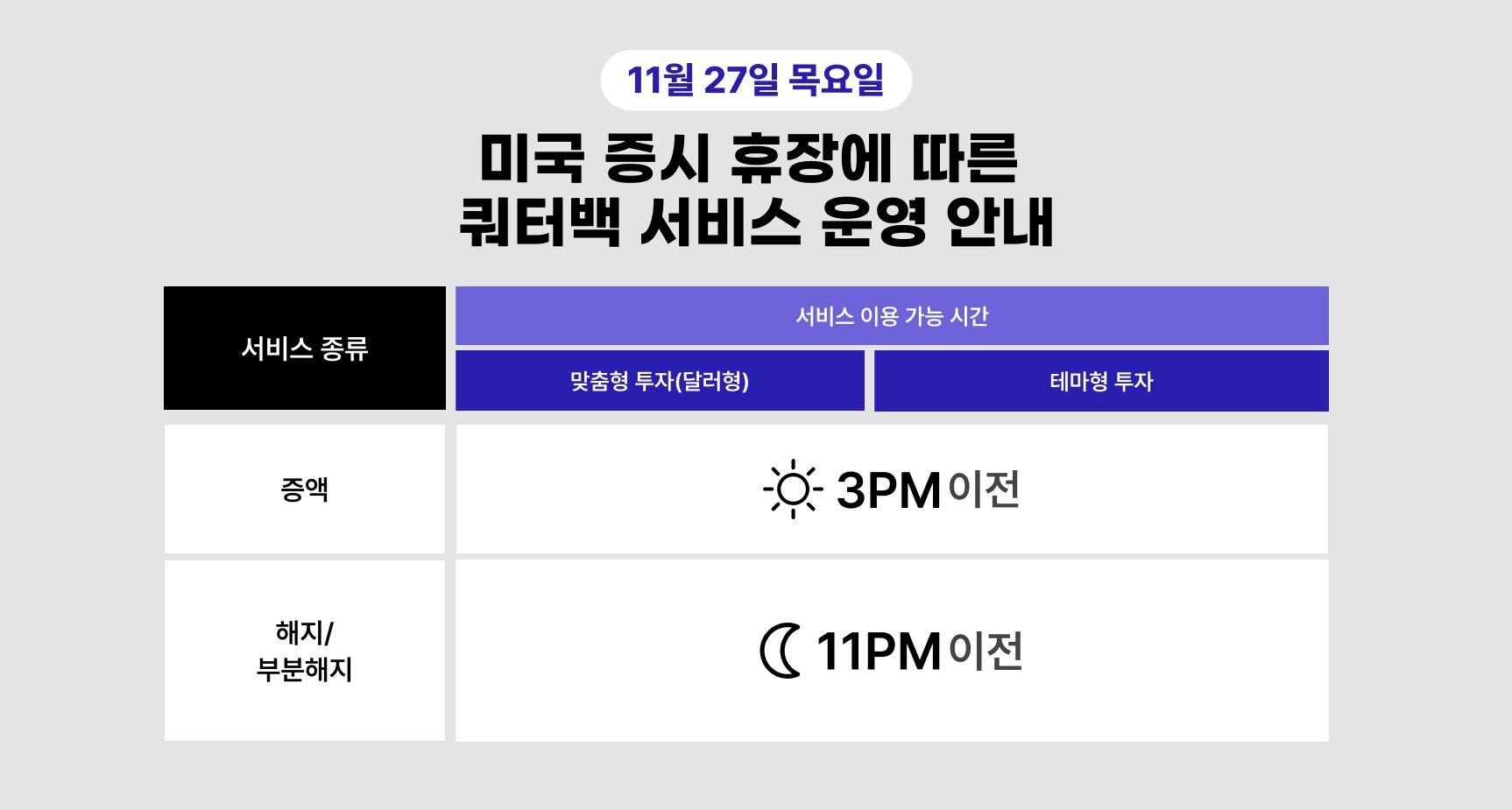 증시 휴장에 따른 서비스 운영 시간을 안내해 드리오니 이용에 참고 부탁드립니다.